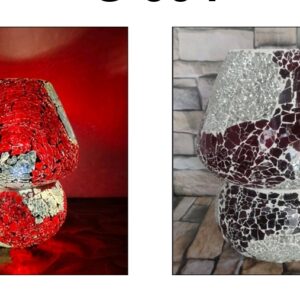 • Lampada Fungo Red GranitoLampada Mosaico in Vetro Ovale e Ceramica Me Gioielli Personalizzabili